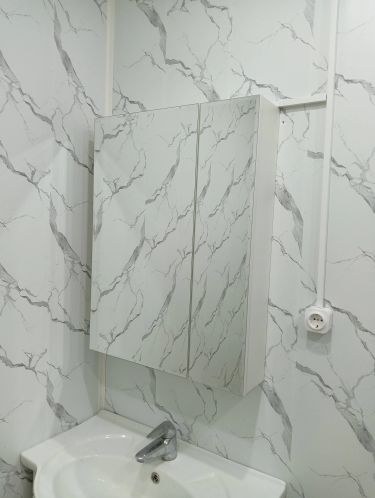 - Повесить зеркальный шкаф в ванной