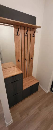 Соберём прихожую по инструкции изготовителя и установим в нужном месте. Работу выполним за 1–2 часа. Будет шумно.