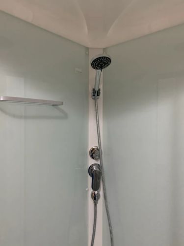 Соберём и установим кабину, обработаем герметиком, подключим смеситель и душ. Работу выполним за 2–4 часа. Будем перекрывать воду.