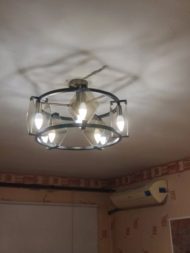 Соберём люстру, повесим на потолок, подключим к электричеству, спрячем провода. Работу выполним за 1–2 часа. Будем отключать свет. Высота стен не более 3 м. Стремянку при необходимости предоставляет клиент.